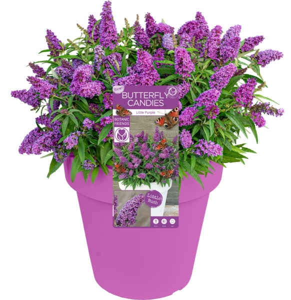 Описание Буддлея Давида Butterfly Candy Little Purpleдекоративный лиственный кустарник буддлеи Давида (Buddleja davidii). Входит в серию Butterfly Candy.
