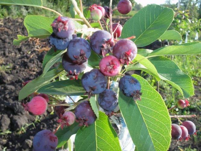 Период созревания: начало — середина июля. Урожайность: 7,5 кг с куста. Самоплодность: ирга самоплодная, опылители не требуются.
