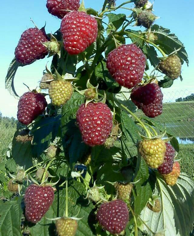 Описание Малина ПоланаРемонтантный сорт малины польской селекции. Выведен в 1991 году путём скрещивания сортов Зева и Херитейдж.