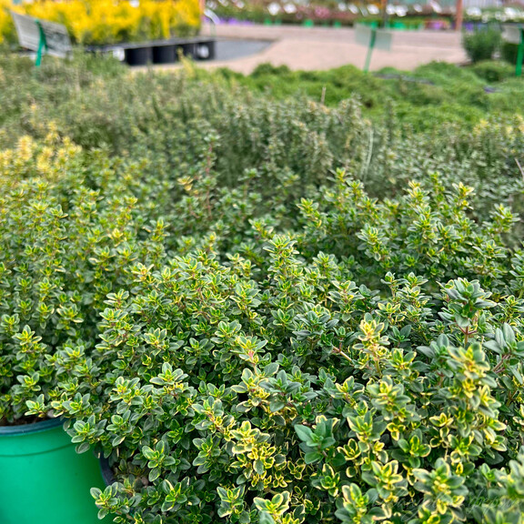 Описание Тимьян лимоннопахнущий Mystic LemonТимьян лимоннопахнущий «Mystic Lemon» (латинское название — Thymus citriodorus Mystic Lemon) — декоративное многолетнее растение, почвопокровник.